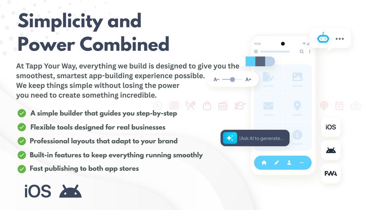 Tapp Your Way lets businesses build clean, powerful apps fast—no coding, no stress, no costly developers. Just simple, affordable creation that works. Curious what it could do for you?